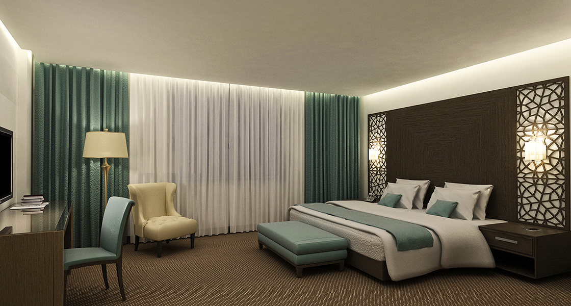 - Three lower floors: luxurious entrance & lounges, restaurant, cafeteria, gym & spa, two ballrooms, and business center