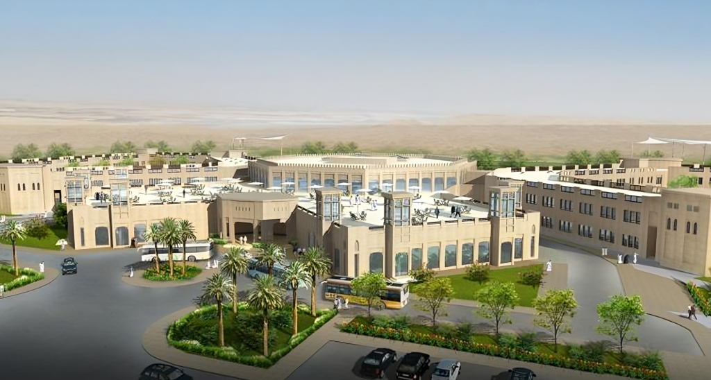 The accommodation complex comprises staff accommodation building; contractors’ accommodation building; contractors’ amenities building; staff amenities building (reception area, reception lounge & VIP lounge, restaurant facilities, coffee shop, T.V. room/ Arabic Majlis, kitchen & laundry, auditorium and miscellaneous facilities (barber shop, maintenance workshops and snooker facility, etc); recreation facilities (indoor sports arena, swimming pools, football field, tennis court, squash, gymnasium, sauna and Jacuzzi, etc); clinic; mosque; service yard; sewage treatment plant; electrical substation; helipad; car parks; automotive repair shop and fuelling station; waste management area and standby diesel generators to the supplied grid power.